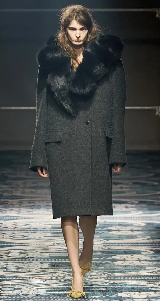 Двигаемся дальше – к более трендовым моделям пальто с меховым воротником. Дизайнеры предлагают делать ставку на гиперболизированные воротники или меховую оторочку и широкие меховые манжеты (тоже хит сезона).
