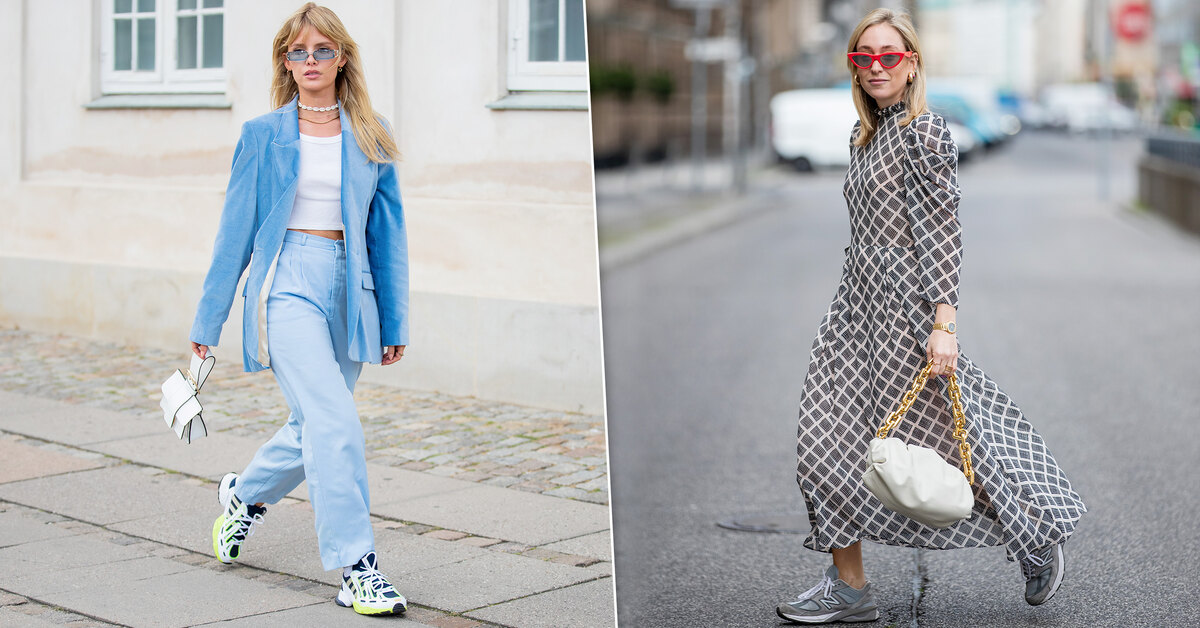 Классические кроссовки с винтажными джинсами или футуристичные модели с длинными платьями? Составляем свежие и стильные осенние образы с кроссовками. К слову, никаких сложных сочетаний — только проверенный кэжуал.
