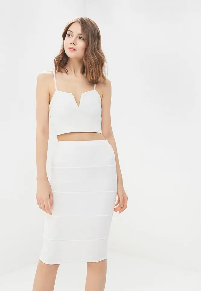 Этот комплект актуального желтого цвета подойдет для отпуска. А вот «по частям» ты можешь носить его и в городе — топ дополняй объемной джинсовой курткой и джинсами с высокой талией, а юбку — укороченным тонким свитшотом.