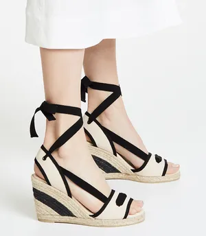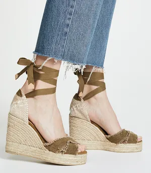 Летняя классика — босоножки на плетеной танкетке и с лентами — идеальный вариант для образа в стиле бохо.