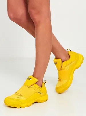 Желтый цвет в роли тренда остается с нами еще как минимум на полгода, поэтому такие кроссовки точно не будут лишними в гардеробе. А благодаря нарочито грубому дизайну они подружатся не только с вещами в спортивном стиле, но и с женственными платьями.