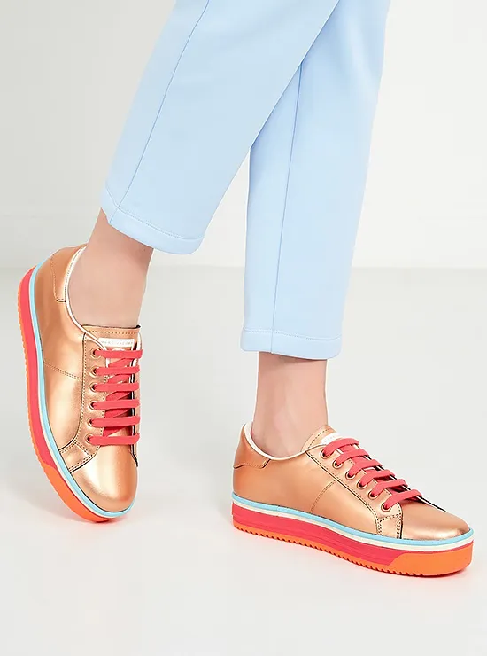 Металлик также не сдает позиций — бронзовые кеды с яркой контрастной подошвой отлично разбавят total white look и будут радовать тебя и окружающих вплоть до зимы.