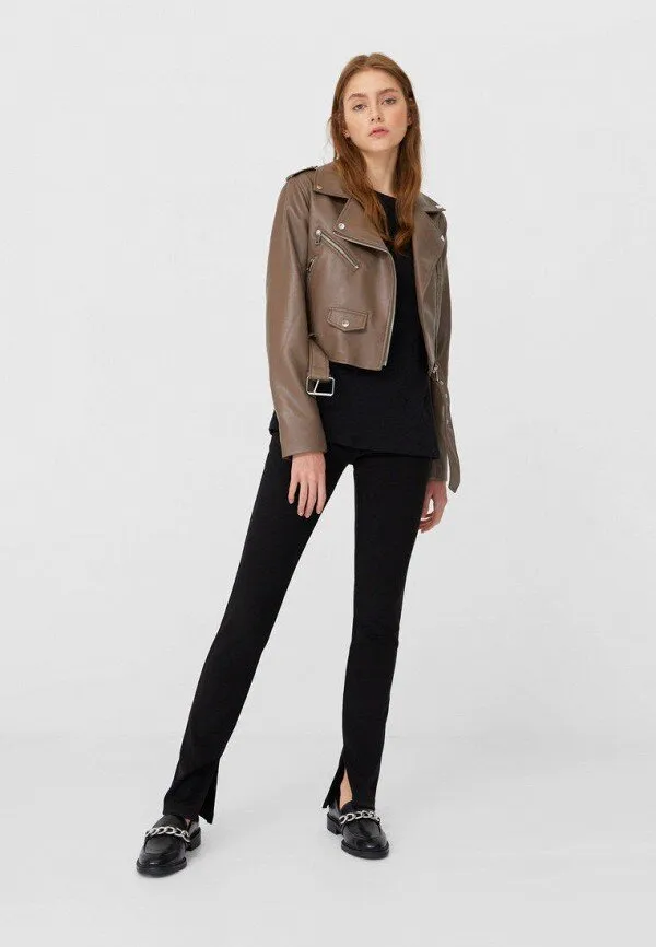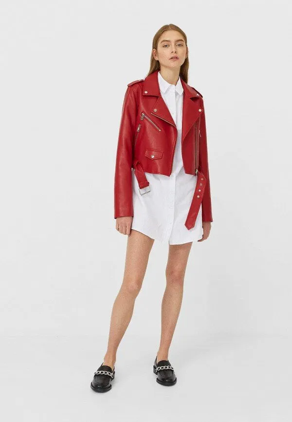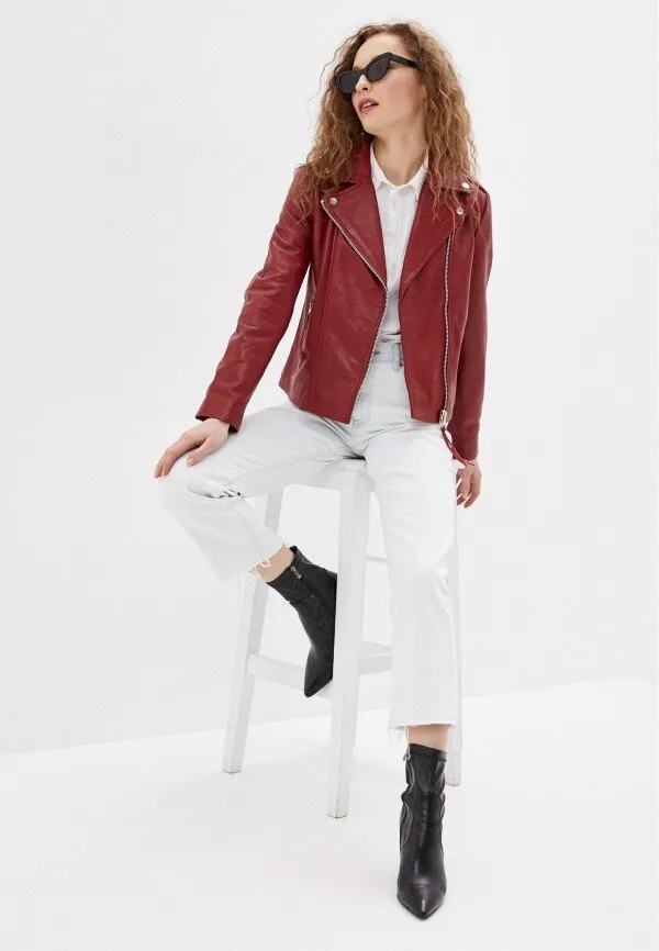 Поэтому смело отправляйся на поиски цветных моделей или косухи светлого оттенка. Если тебе ближе первый вариант, обрати внимание на яркие куртки благородных цветов, таких как винный, красный, темно-зеленый, шоколад, а также пастельные модели для создания модных образов.