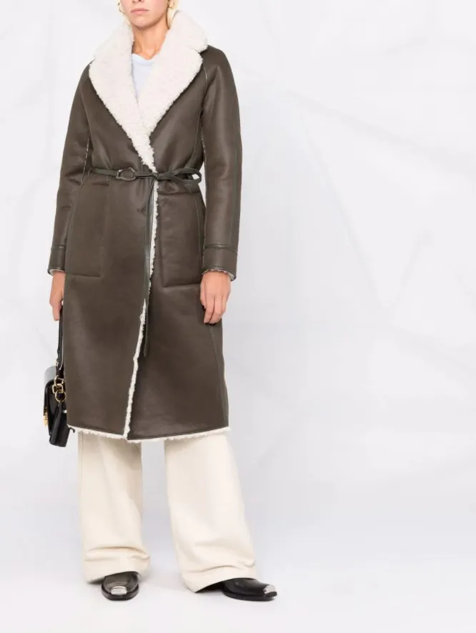 Поклонницам классических силуэтов стоит обратить внимание на модное меховое пальто кремового цвета с английским воротником и поясом. Оно особенно понравится тем, кто часто носит строгие брючные костюмы, классические сарафаны и платья, элегантные брюки и длинные юбки. Носи его с акцентной кожаной обувью и лаконичными сумками средних размеров с жестким каркасом. Идеальным дополнением к пальто станет кашемировый шарф или палантин, минималистичная шапка или берет.