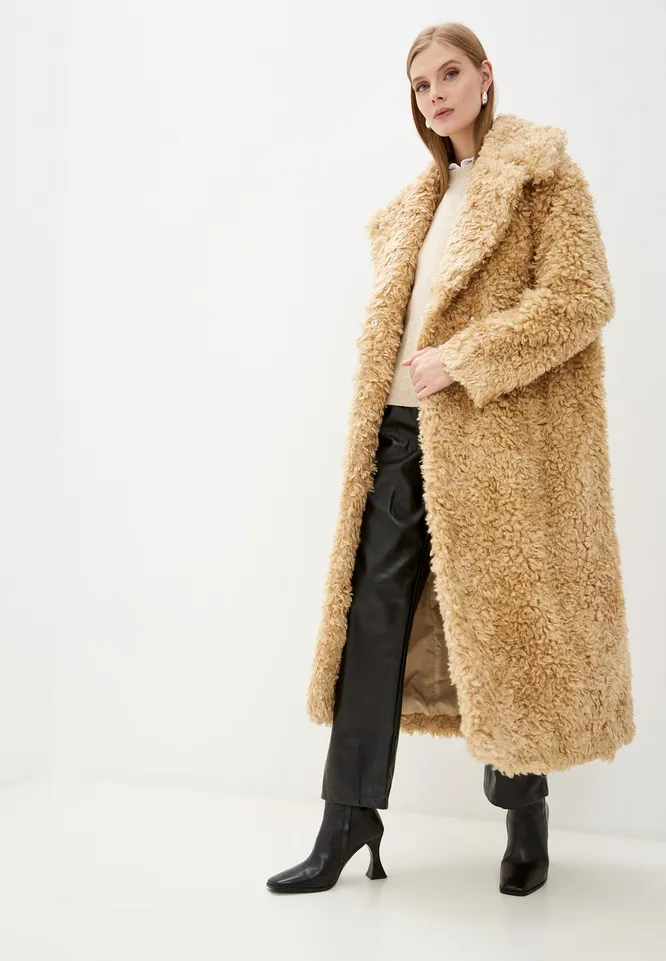 Меховые пальто под овчину прочно обосновались в списках зимних трендов. Они есть в гардеробе каждой модницы, в том числе и у Ирины Шейк, Беллы Хадид, Иванки Трамп. Если ищешь что-то простое и комфортное, предлагаем купить в интернет-магазине меховое пальто под овчину бежевого цвета. Модель круто смотрится с кожаными брюками и высокими грубыми ботинками на шнуровке. Также можно надеть его с уютными трикотажными штанами, вязаной шапкой бини и зимними кроссовками.