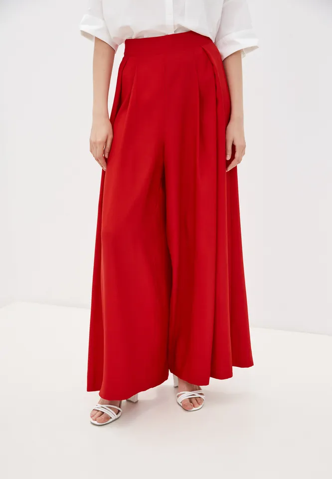 Если ищешь что-то яркое, обрати внимание на красные палаццо. Удачной партией к ним станет белая рубашка с коротким рукавом и пара обуви на каблуке. Можно добавить шляпу и солнечные очки в ретростиле.