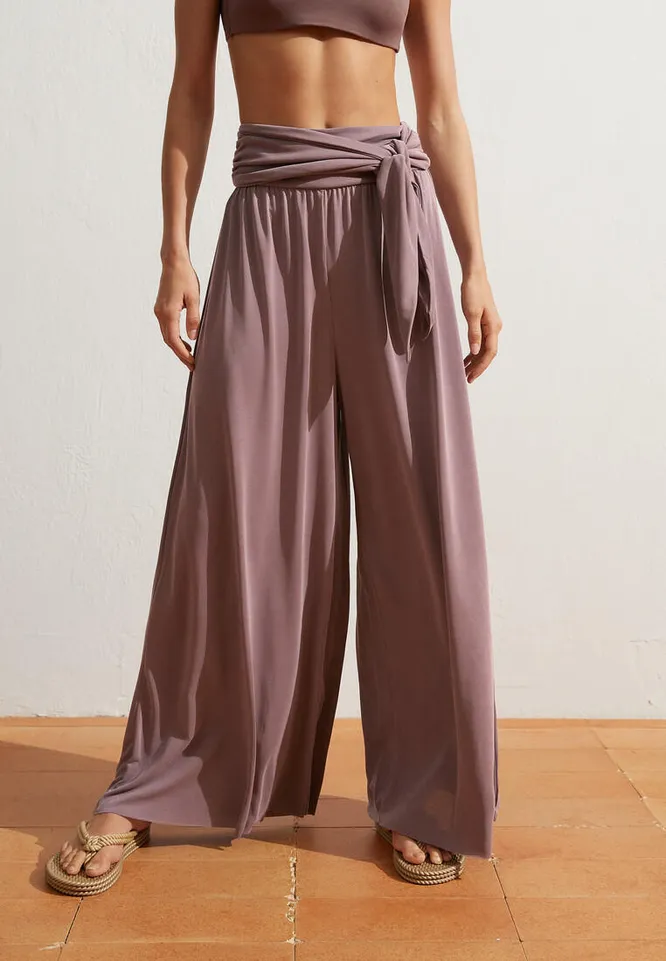 Струящиеся брюки из модала идеально подойдут для пляжных образов. Дополни их коротким топом, широкополой шляпой и пляжной сумкой.