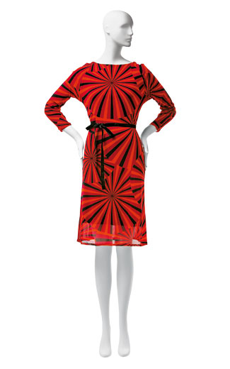 Активная окраска платья с динамичным принтом в стиле поп-арт выдержит и не менее яркие дополнения. Праздники не закончились!