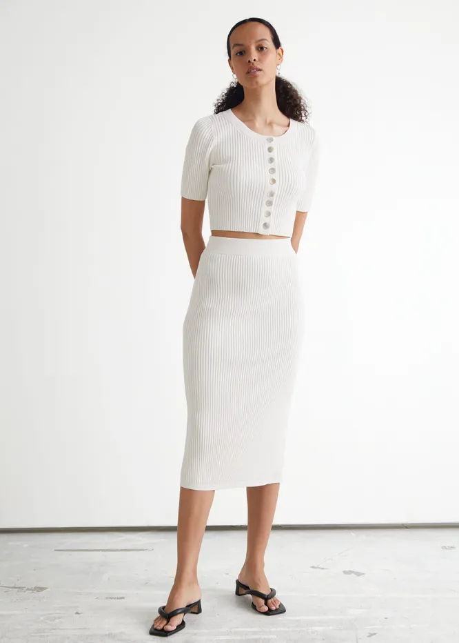 Для расслабленных повседневных аутфитов подойдет юбка из плотного трикотажа. Добавь к ней джемпер в тон или водолазку с объемным пиджаком.