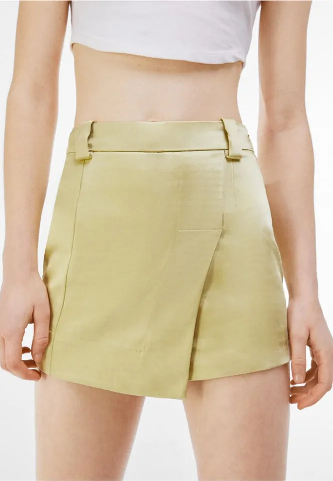 Создать стильный минималистичный образ поможет юбка-шорты из шелковистой ткани нейтрального цвета. Попробуй носить ее с легкой белой рубашкой и лаконичными кожаными сандалиями.