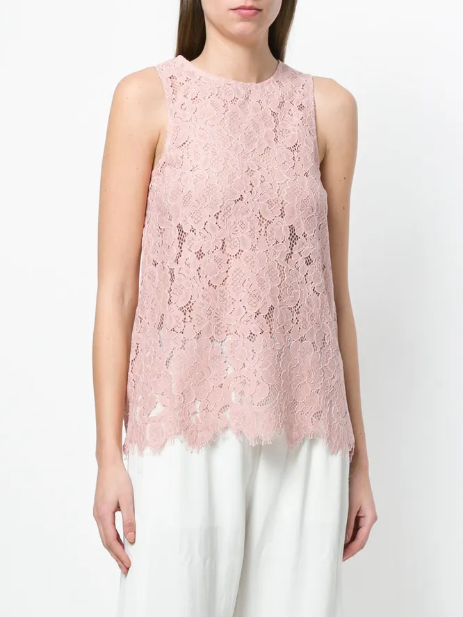 Майку из кружева пастельного оттенка стоит надеть на встречу с возлюбленным. На наш взгляд, особенно хорошо она будет смотреться с белыми брюками или кюлотами.