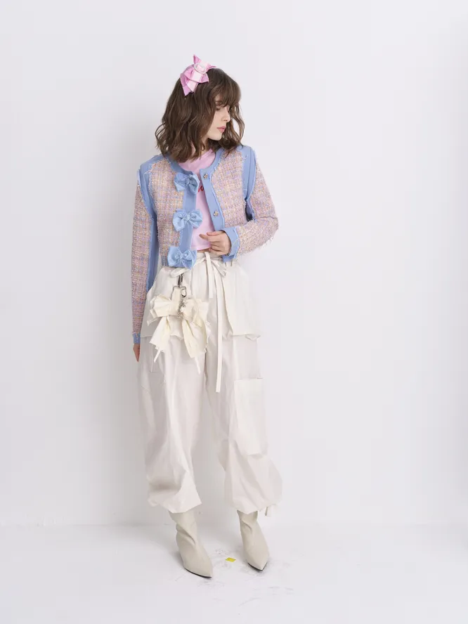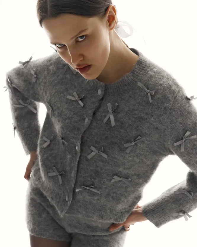 Как бы нам ни хотелось поскорее надеть легкие топы, погода на улице пока не позволяет. Но и в теплой одежде можно выглядеть очаровательно, и кардиганы и жакеты с бантами разных форм – тому подтверждение.