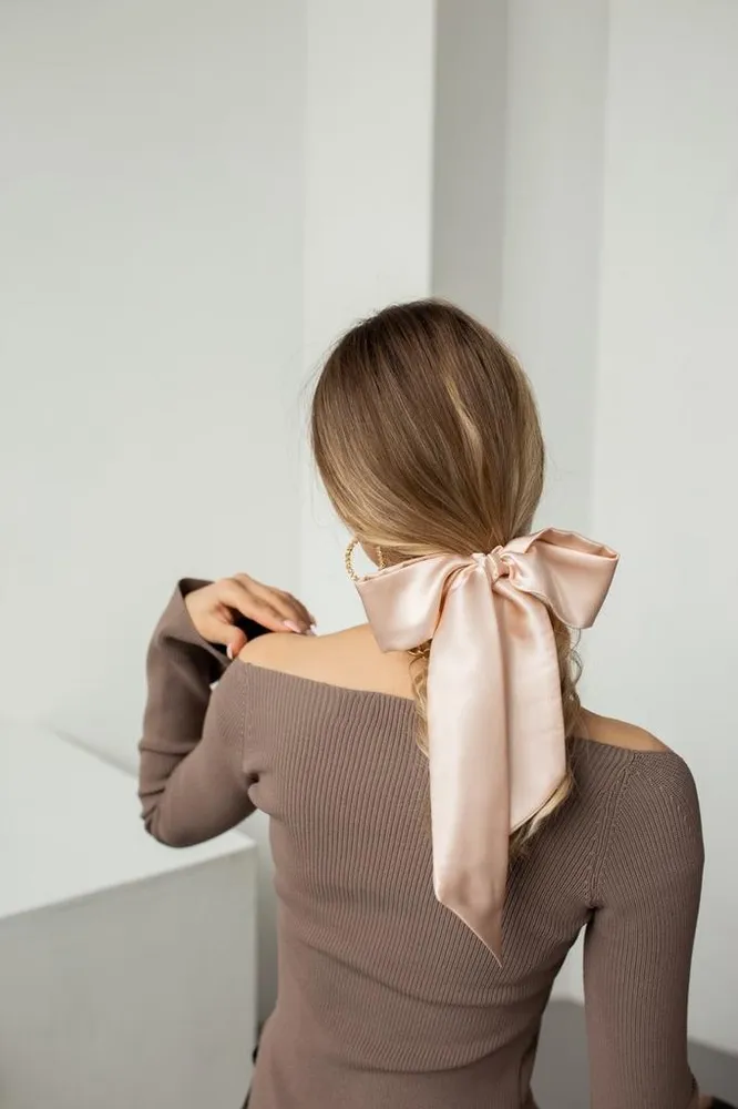 И, конечно, не забываем про традиционный способ использования бантиков — украшаем ими волосы. Классно смотрятся объемные заколки, которыми можно собрать часть волос. Прическа становится аккуратнее, а бант играет роль милой детали, на которой хочется задержать взгляд. Кстати, минималистичные заколки с однотонными бантами отлично подойдут любительницам стиля «old money».