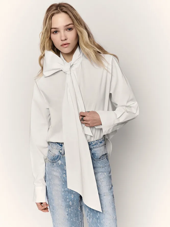К этому тренду есть только один вопрос: как носить? Образы с подиумов редко подходят для повседневных выходов. К счастью, любой тренд можно адаптировать под себя. Отлично будет смотреться однотонная блуза с бантом вместо воротника. Ее можно сочетать с джинсами и кардиганом — тогда look получится расслабленным, и ты будешь отлично чувствовать себя в нем на прогулке.
