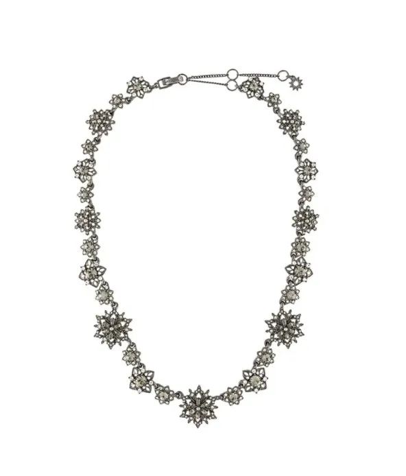 Еще один вечерний вариант – колье с кристаллами и цветочными мотивами. Украшение гармонично дополнит и скромные платья, и шикарные наряды для ковровых дорожек.