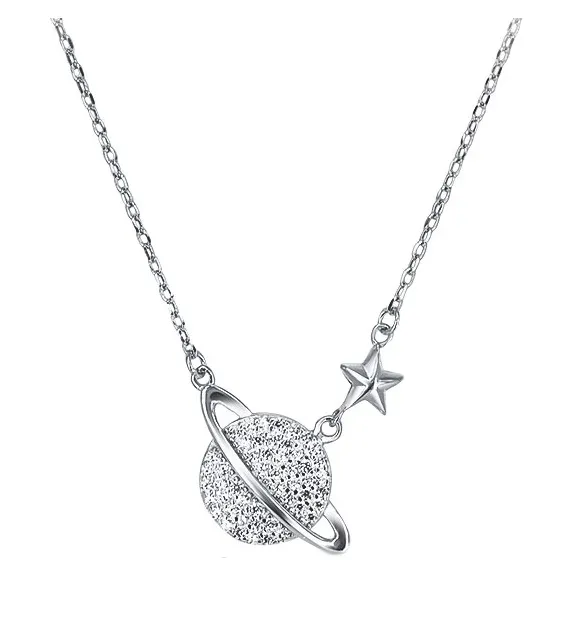 Серебряное колье с подвеской, украшенной завораживающим кубическим цирконием, выполненной в интересном дизайне, станет подходящим аксессуаром для любительниц космической тематики. В пару к нему можно подобрать серьги-гвоздики в форме звездочек или добавить миниатюрную подвеску в виде ракеты.