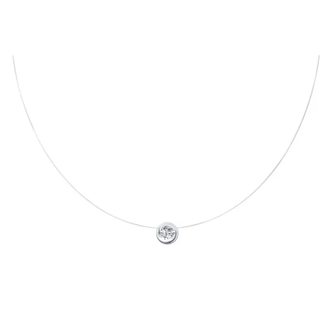 Особую популярность в этом сезоне обрели колье-лески с миниатюрным бриллиантом. Украшение выглядит невесомым, и кажется, что камень «парит» сам по себе. Колье красиво смотрится как соло, так и в сочетании с другими шейными украшениями (цепочками, чокерами, бусами).
