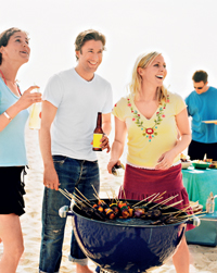 Уверена, что жизнь стала бы прекрасна и удивительна, если бы мы все вдруг стали вегетарианцами. Но... Но неотвратимо наступает месяц май и приносит с собой не только запах черемухи и сирени, но и проникающий в подсознание запах мяса, заботливо выдержанного в уксусно-винно-пивном маринаде и дымящегося на костре. Кусочек к кусочку, через одно колечко румяного лука... Раз уж мы все равно едим мясо и (стыдно сказать!) получаем от этого удовольствие, давай попробуем под это подвести хоть какую-то теоретическую базу. Ну скажем, мясо, приготовленное на открытом огне, на порядок полезнее шкварчащей на сковородке отбивной: в нем меньше жира и канцерогенов. Во всяком случае, раз в месяц побаловать себя можно. Только не забудь, что лук из маринада нанизывать на шампур категорически запрещается: лук впитывает в себя все вредные вещества, которые могли оказаться в мясе, так что выбрось его и используй свежий.