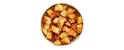 Маленькие сухарики, а калорий много. Трудно поверить, но 50 граммов сухариков содержат около 240 калорий и 20 граммов жира. Причина: маленькие кубики хлеба обычно жарят в большом количестве масла. Поэтому в ресторанах эту добавку следует избегать, и не покупать готовые крутоны из супермаркета. Если же все-таки хочется добавить что-то хрустящее в салат, то подсуши цельнозерновой хлеб сама на сковородке с каплей оливкого масла.