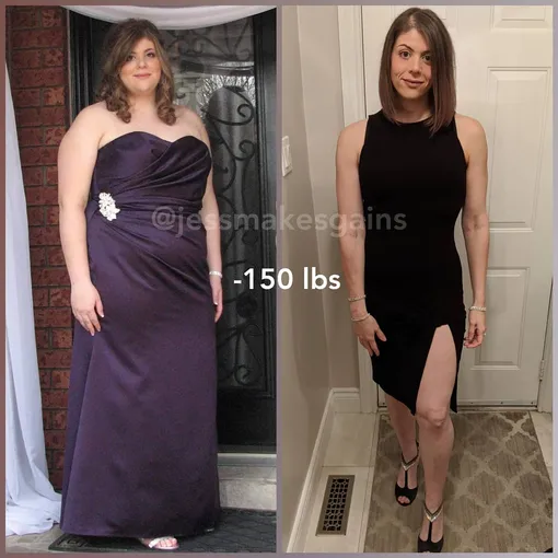 Джесс (@jessmakesgains) похудела примерно на 70 килограммов благодаря активным регулярным тренировкам и контролю питания. «Похудение положило начало тому, чтобы стать личным тренером и помогать другим людям на их пути к здоровью. У меня был лишний вес большую часть моей жизни, примерно с 5 до 24 лет. Я столько раз пыталась похудеть на протяжении этого времени, но раз за разом у меня ничего не получалось. Мне потребовалось много лет, чтобы найти собственный баланс и достичь того телосложения, которое я всегда хотела. Если я смогла это сделать, то сможете и вы».