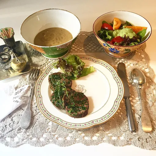 Некоторым может показаться, что 800 калорий в день – это слишком мало, однако Эвелина другого мнения: «Это совершенно не так. Вот, например, обед из 313 ккал: салат из овощей с соусом из тофу с зеленью, крем-суп из баклажана, говядина в травах, приготовленная при низкой температуре. Разве мало?» А вы согласны с экспертом «Модного приговора»?