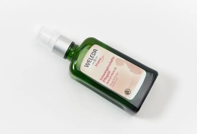 Масло от растяжек во время беременности с натуральным органическим составом. Продается в темном стеклянном флаконе с помпой-дозатором, подобной тем, что используют для гелей. Масло имеет легкую прозрачную консистенцию. Судя по откликам покупательниц, оно быстро впитывается, не оставляя следов на коже или одежде. Имеет своеобразный, но не раздражающий аромат, что особенно важно для беременных.