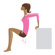 И.п.: повернись спиной к дивану, руки поставь на край на ширине плеч, таз – чуть вперед, на весу.