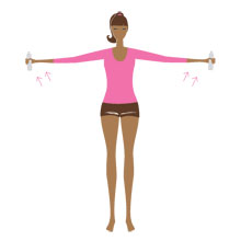 Методические указания: спина ровная, лопатки сведены, в верхней точке руки поднимай до уровня плеч.