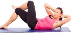 Чтобы задействовать мышцы нижнего пресса, поднимай весь корпус к коленям. Если это упражнение кажется тебе слишком легким, выполняй его с гантелями. Возьми в руки гантели весом 2-3 кг, прижми руки к груди и поднимай корпус к коленям. Выполни 3 подхода по 20 раз.