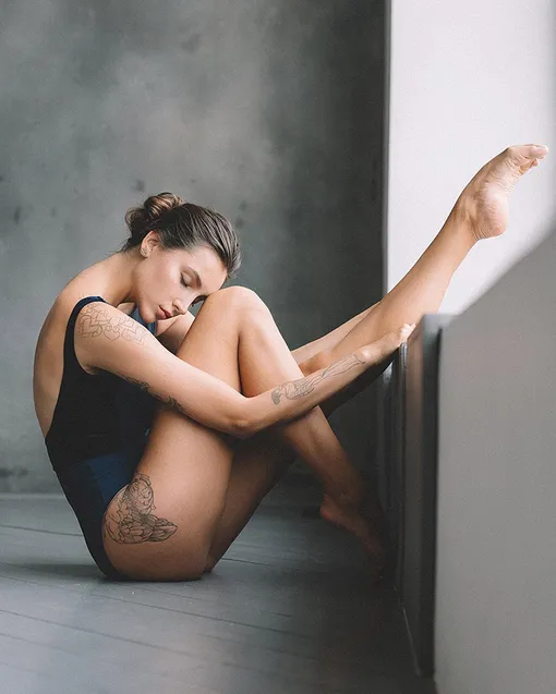 У меня семь тату, и все они продуманные, ни об одной я не жалею. Каждая отображает счастливый или сложный (или сразу оба) период моей жизни. Когда негатив копится внутри, я иду на растяжку, и это освобождает меня. Когда моя жизнь меняется, я бью новую тату, чтобы помнить об этом периоде.