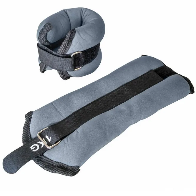 Груз на ноги для тренировок наполнен мелким песком. Он сделан из прочного и мягкого на ощупь неопрена. Благодаря длинным ремешкам и липучкам его легко подогнать под размер руки или ноги. Металлические кольца, в которые продеваются ремешки, долговечные и прослужат дольше пластиковых.