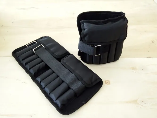 Сами утяжелители также сделаны из мягкого нейлона, поэтому спортсменкам не стоит опасаться, что они натрут кожу. Надежные крепления на липучках позволят быстро и надежно закрепить утяжелители на руках или ногах, а после выполнения упражнений их без проблем можно снять и уложить обратно в сумку. Наполнены утяжелители металлической стружкой.