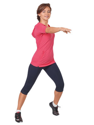 ИП: ноги вместе, колени слегка согнуты. Левая нога впереди, правая – сзади под 900. Правая рука впереди, левая отведена назад.