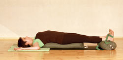 4 СЕТУ БАНДХА САРВАНГАСАНА Тебе понадобятся два валика-болстера. Расположись так, чтобы в верхней части спины образовался прогиб, а голова, плечи и руки лежали на полу. Стопы немного разведи. В позе хорошо вытягивай ноги. Полностью расслабь грудную клетку, лицо и живот. Наблюдай за дыханием. Область диафрагмы полностью раскрывается, и дыхание становится мягким и свободным. Пребывай в асане 5 минут. Чтобы выйти из позы, согни ноги и, отталкиваясь стопами, мягко скользни вниз. |