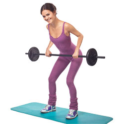 ![]() | 4. Тренируем мышцы рук (бицепс) ИП: обратный хват штанги, ноги на ширине тазобедренных суставов, колени чуть согнуты, подкручивая таз вперед, напряги мышцы живота. Локти прижаты к талии, лопатки максимально сведены. НА ВЫДОХЕ согни руки в локтевом суставе. НА ВЫДОХЕ вернись в ИП. NB! Не клади штангу на плечи! |