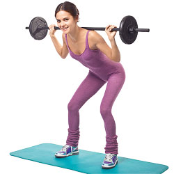 ![]() | 1. Тренируем мышцы ног ИП: широкий хват, штанга на трапеции, ноги на ширине таза, естественный разворот стоп, колени чуть согнуты, спина прямая. НА ВДОХЕ: присев, таз уведи назад, колени не выходят за проекцию стопы. НА ВЫДОХЕ: выпрямись. NB: Спина прямая, мышцы живота напряжены. |