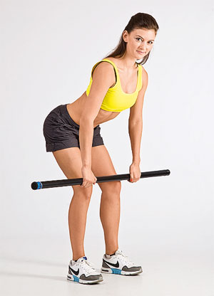 ![]() | 1. Наклон с тягой ТРЕНИРУЕМ МЫШЦЫ СПИНЫ ИП: стоя, стопы на ширине таза, грудная клетка раскрыта. Бодибар в руках: прямой хват. На вдохе наклони корпус вниз (спина ровная!), бодибар при этом опусти вдоль бедер, к центру колен. На выдохе подтяни снаряд к животу, сведи лопатки . Вдох – верни бодибар к центру колен, на выдохе подними корпус в ИП. |