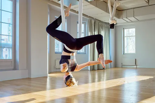 Она превращает практику в почти мистический опыт. Тренировка проходит в гамаке, который сразу создает ощущение безопасности и комфорта. Левитация позволяет исследовать позиции, недоступные на полу, а также разгрузить спину. Метод учитывает биомеханику движения и эмоциональное состояние, но многие рекомендуют сначала проконсультироваться с врачом на наличие противопоказаний.