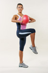 | Исходное положение: стоя, мяч сжат в руках на уровне груди, локти в стороны. Выдох – поднимая бедро, скручивайся к нему в талии. Спина прямая, живот втянут, на мяч дави изо всех сил. Вдох – исходное положение. |