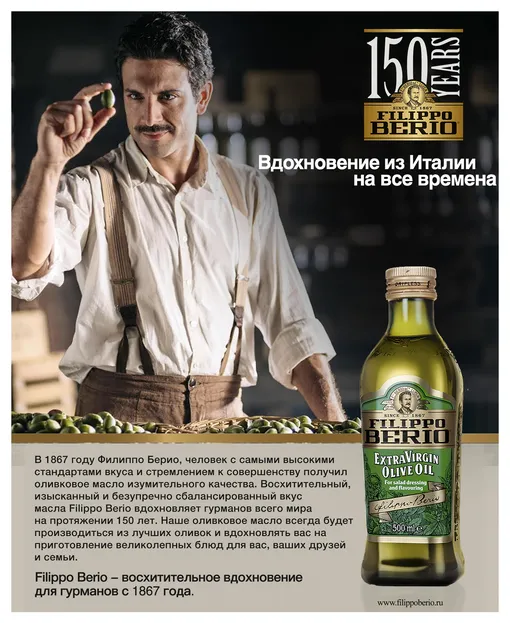 «Filippo Berio» — это не только бренд: это — реальный человек, предприимчивый итальянский коммерсант, имя которого со второй половины XIX века вносит огромный вклад в историю развития экспорта оливкового масла.