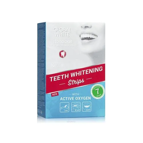 На полоски нанесен специальный отбеливающий гель на основе активного кислорода, который позволяет за сравнительно короткое время восстановить оттенок эмали, подвергшейся действию пищевых красителей. Полоски прикрепляются к зубам липкой стороной и оставляются на 30 минут. Они плотно прилегают, давая возможность осветлить зубы даже в труднодоступных местах.