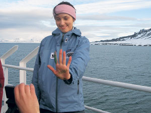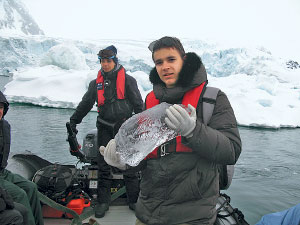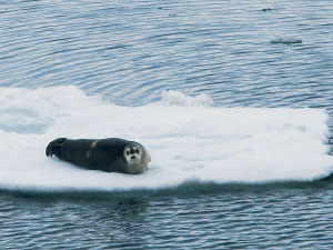С этим моржом члены экспедиции очень хотели познакомиться поближе – не удалось; осколки – весомое доказательство того, что ледник тает на глазах. | ![]() |