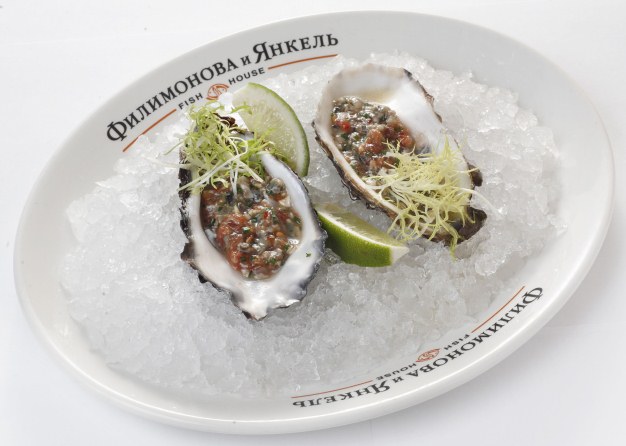 В специальном меню «Филимонова и Янкель» будут представлены пять видов устриц: Маренн д'Олерон №2 (280 руб. за 1 шт.), Белый Жемчуг №3 (280 руб. за 1 шт.), Специаль №1 (360 руб. за 1 шт.), Специаль Кремлевская №2 (390 руб. за 1 шт.), Жилардо №2 (380 руб. за 1 шт.).