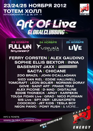 23 ноября (пятница) — Full on Ferry. Мероприятие с концепцией back to back — выступлением ди-джеев в дуете. Такие коллаборации зачастую становятся яркими примерами достижения уникального звучания. Известный голландский ди-джей и саунд-продюсер Ferry Corsten встанет за пульт с коллегами со всего мира: Zoo Brazil, Sied van Riel, John o'Callaghan Leon Bolier, D-mad и др.