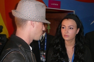 | Дима Колдун беседует в азербайджанским журналистом. | Анастасия Приходько в холле