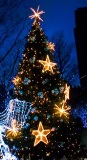 Зебра или украшение «массами». Это дизайнерский способ украшения елки, когда ее наряжают «полосами». Обычно этим способом украшают елки в «промышленных» масштабах: на улицах или в витринах магазинов. Одна полоса, например, из одинаковых шаров окружает елку сверху, вторая – внизу, а между ними полоса из мишуры. Выглядит это украшение, как спираль, при этом елка должна подходить по цветовой гамме к помещению, и стать как бы частью интерьера.
