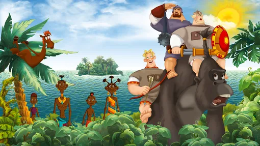 На этот раз купец Колыван сговорился с Бабой-Ягой, озвученной Лизой Боярской, и они отправили богатырей далеко за моря на тропический остров. Теперь им предстоит встретиться с диким племенем и огромным Гомумой. А пока богатыри ищут путь домой, злодеи уже начинают захват царства. На помощь Киевскому князю, роль которого исполнил Сергей Маковецкий, приходят жены богатырей, а также говорящий конь Юлий.