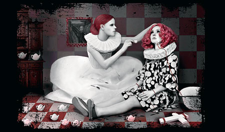 Принять участие в фотоэксперименте Наталия Рецца пригласила своих подруг, роль девочки досталась Маше, куклы – Тане. «Мои подруги любят необычные съемки не меньше, чем я, и мы часто совместными усилиями создаем оригинальные образы. При этом каждая подобная фотосессия для нас не столько рабочий процесс, сколько возможность пообщаться, вволю насмеяться и отдохнуть от взрослого мира с его суетой и проблемами». Этот кадр входит в серию фото. Идея ее создания к Наташе пришла внезапно, но она не была уверена, что сможет ее реализовать, – требовался сложный реквизит. Но в итоге все решилось. Например, платье девочки сделали из материала, которым для тепла укрывают грядки (называется спанбонд). Расстелив его на полу квартиры-студии, девушки втроем кроили, клеили, резали. А у Тани нашлось потрясающее, вполне кукольное платье.