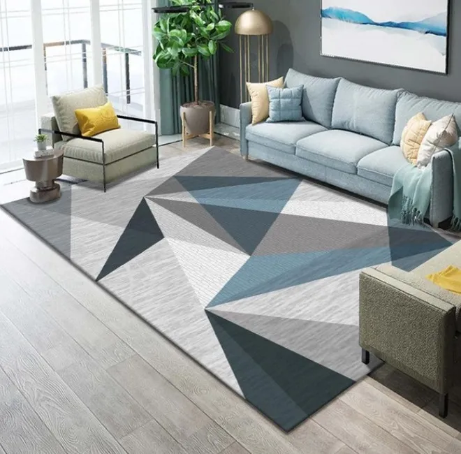 Ковер с абстрактным геометрическим принтом мгновенно преобразит гостиную или спальню.