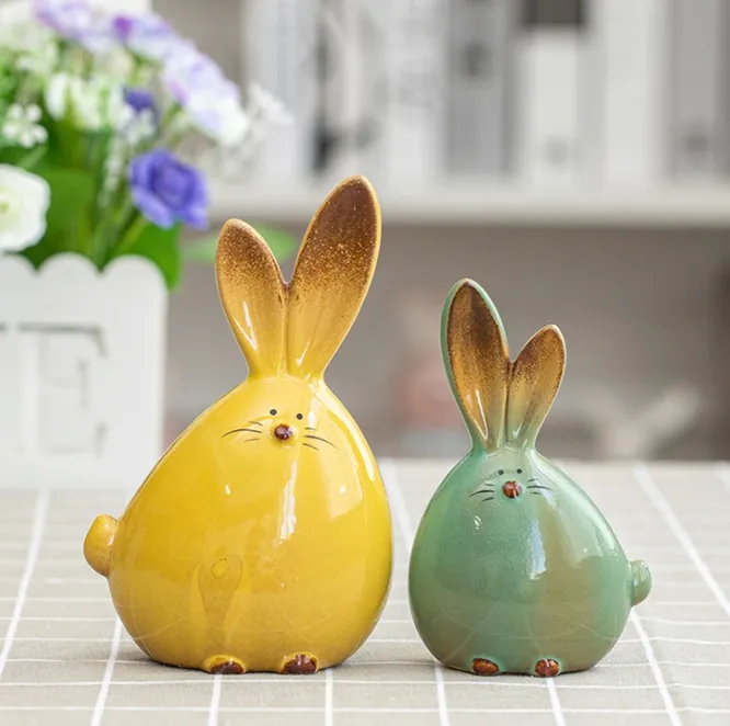 Декоративные статуэтки – пузатые кролики органично впишутся и в стильный дизайнерский, и в минималистичный, и в эклектичный интерьер.